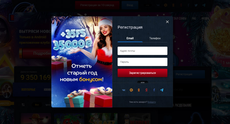 Желающим играть с реальными деньгами на сайте Вулкан ру, требуется выполнить процедуру регистрацию. Чтобы открыть аккаунт на этой площадке, достаточно: